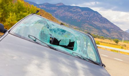 Un coche accidentado en una carretera de montaña