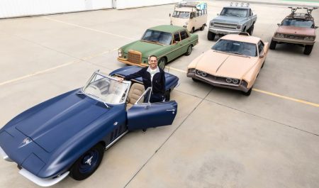 Los coches son un Mercedes 280 SE de 1969, una Volkswagen T de 1972, un Buick Riviera de 1966, una pick-up Chevrolet K-10 de 1972, un Chevrolet Corvette de 1965 y un Chevrolet El Camino de 1985.