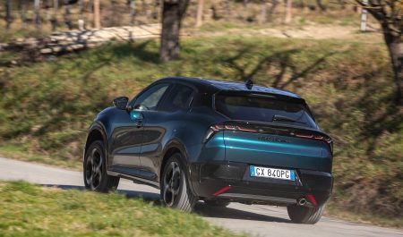 Monta la misma batería la versión Veloce, que rinde 205 KW (280 CV), y tiene otro motor en el eje trasero (proporciona tracción 4×4) por lo que su autonomía baja hasta los 334 kilómetros. Eso sí, monta un diferencial Torsen en el eje delantero, uno de los pocos coches eléctricos con este elemento, que resulta determinante para su buen guiado en zonas de curvas y a ritmo elevado.