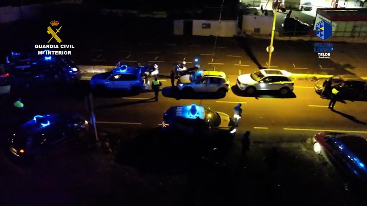 Como consecuencia de la investigación, la madrugada del pasado 31 de marzo, la Guardia Civil y la Policía Local de Telde realizaron la fase “de explotación” del operativo. En ella participaron más de 50 agentes, entre patrullas y la Unidad UNIDRON, que se encargó de la cobertura aérea.