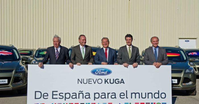 La apuesta de los grandes fabricantes de coches por España es clara. Si hace unos días, Renault anunciaba un plan industrial que permitirá crear 1.200 nuevos empleos en Valencia, Palencia y Sevilla, Ford dio ayer el pistoletazo de salida a la fabricación en Valencia para todo el mundo del nuevo Kuga. Tras invertir 1.112 millones de euros en el último año y medio en su planta de Almussafes, la firma aumentará su producción un 80% en 2013 —280.000 vehículos anuales—, que al año siguiente se convertirán en 300.000 con los modelos Kuga y Transit Connect.