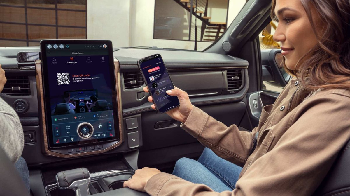 Cuando se inicia la aplicación en la pantalla del vehículo, el coche detectará si hay un pasajero con el cinturón puesto en el asiento del copiloto. En caso afirmativo, aparecerá un código QR en la pantalla. Entonces, el pasajero utilizará su smartphone para escanear el código, lo que le llevará a una página web donde, sin tener que tener la aplicación ni iniciar sesión, podrá controlar la experiencia del karaoke.