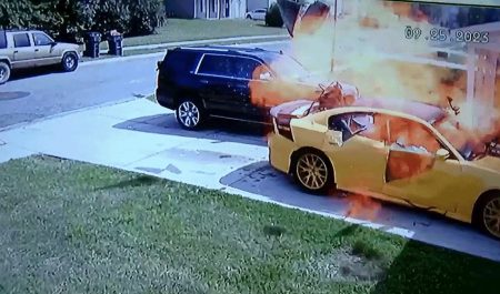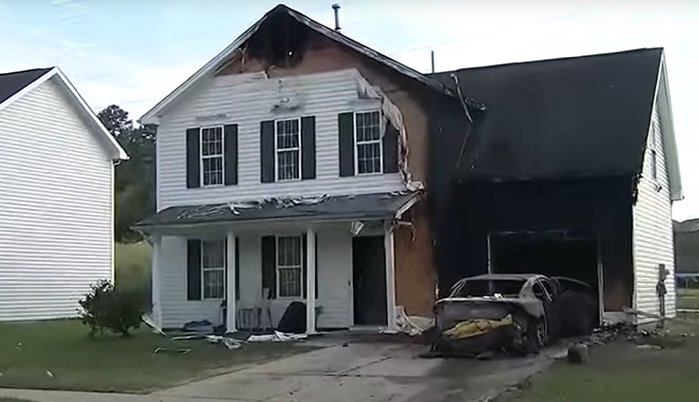 Tal como muestran las imágenes, la mujer quedó prácticamente con el coche carbonizado y parte de su casa dañada. Para costear los gastos del accidente, la hermana de la víctima está realizando una colecta en GoFundMe.