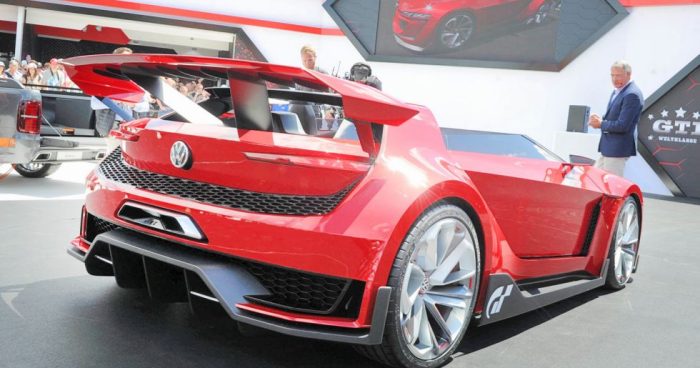 Se trata de una propuesta radical, claramente pensada para un videojuego e inspirada en el Design Vision GTI Concept que la marca presentó en el evento de 2013. Toma la base de dicho prototipo y exagera todavía un poco más sus rasgos: carrocería ensanchada, paragolpes más agresivos, llantas de 20 pulgadas y, como salta la vista, transformado en un biplaza descapotable con un enorme alerón trasero.