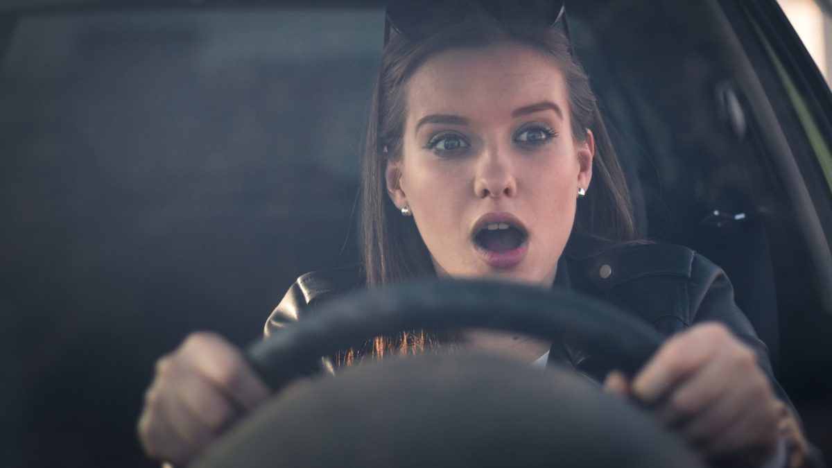 conductora coche asustada
