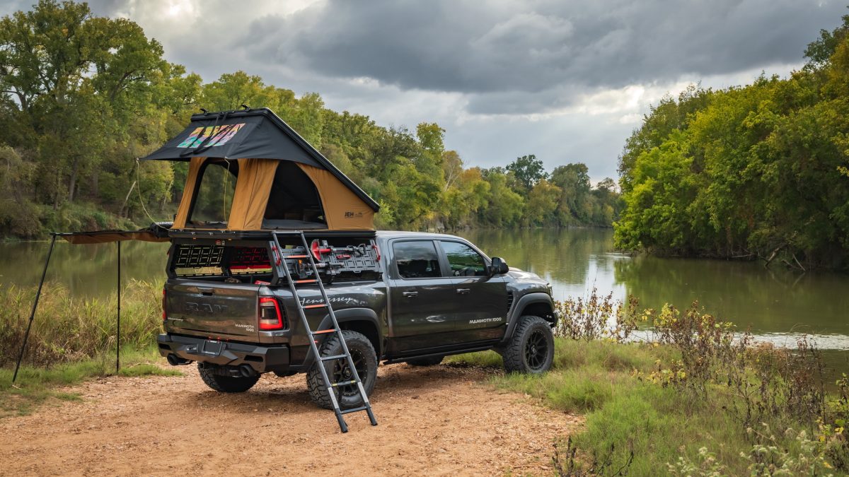 El Hennessey Mammoth 1000 TRX Overland Edition, con sus accesorios desplegados.