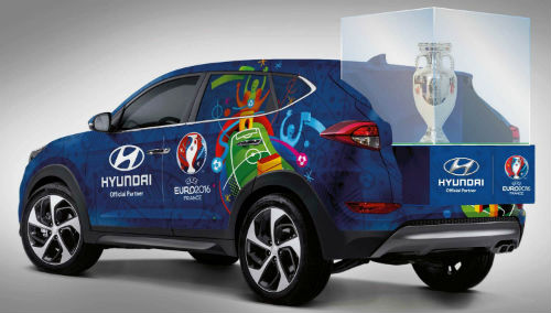 «Al apoyar el desfile del trofeo con nuestro todocamino compacto diseñado y decorado especialmente con los colores de la UEFA EURO 2016, estamos ayudando a proporcionar la máxima exposición de la Copa Henri Delaunay al público francés, antes de su adjudicación al equipo ganador de la Eurocopa el 10 de julio en el Stade de France», declaró Thomas A. Schmid, Director de Operaciones de Hyundai Motor Europa.