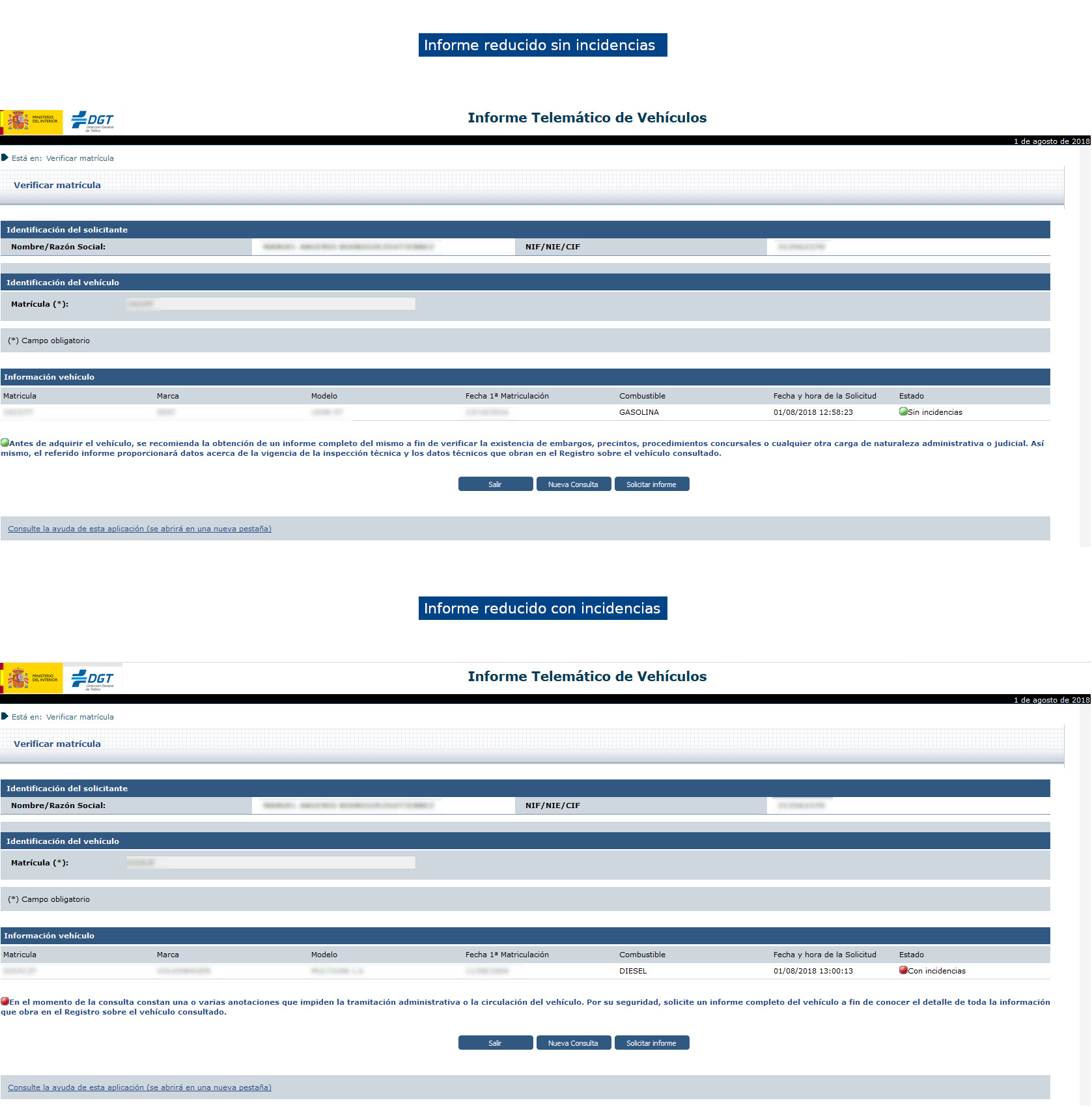 • Con incidencias: hay una o varias anotaciones que impiden la tramitación administrativa o la circulación del vehículo. Igual que en el caso anterior, habría que pedir un informe completo.