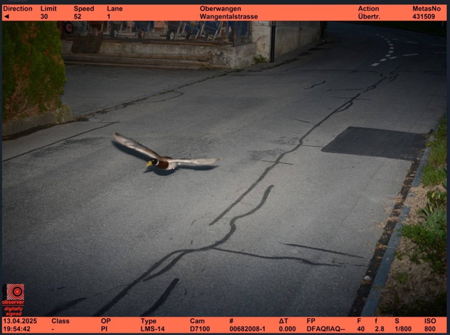 La sorpresa fue mayúscula al constatar que el radar había registrado a un veloz pato ¡circulando a 52 kilómetros por hora en una zona limitada a 30! La imagen, difundida con asombro por el propio municipio en su página de Facebook durante el fin de semana, no tardó en generar comentarios y carcajadas entre los usuarios.
