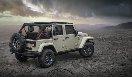 Disponible en versión de dos puertas o en la Unlimited de cuatro, y con todas las bondades del modelo base incluidas, esta edición especial añade elementos bastante interesantes cuando se trata de salir del asfalto. La carrocería está sobreelevada, presenta un eje delantero reforzado, de la misma manera que el diferencial, y se han recortado las protecciones tubulares inferiores para que los pasos de rueda puedan alojar neumáticos de hasta 35 pulgadas. Eso sí, de serie monta llantas de 17 con neumáticos BF Goodrich Off-Road de 32 pulgadas.
