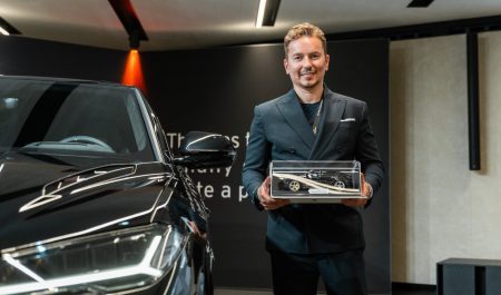 Sobre la combinación elegida, Jorge Lorenzo comenta: “Me encanta el interior con los detalles en amarillo… Creo que es una especificación muy elegante, de muy buen gusto. También hubo algunas sorpresas inesperadas. Me gustó mucho cómo se presentó el coche, el entorno de La Prima es impresionante. El momento en el que es desvelado y de repente se ve la fábrica… no puedes tener mejores vistas. Ni siquiera junto al mar”.