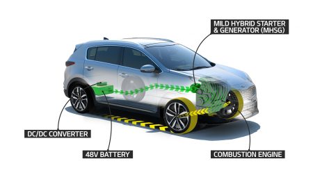 En el caso de Kia, el sistema recibe el nombre de EcoDynamics+, se estrenará en el Sportage y posteriormente se incorporará a otros modelos. Su tamaño compacto facilita que se integre en coches ya existentes y, además, exige demasiado espacio y supone un aumento excesivo de peso.