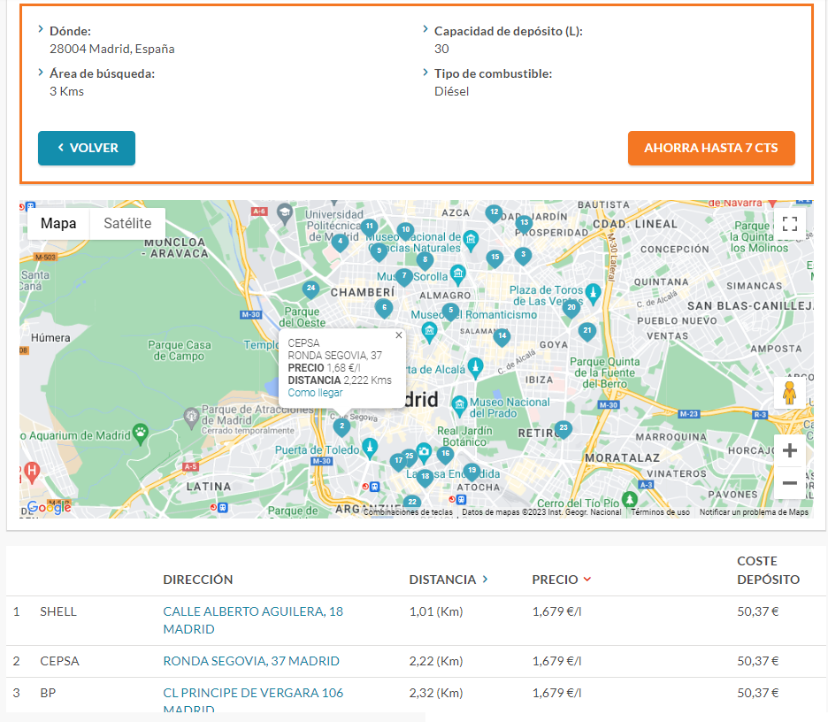 Del mismo modo que se pueden comparar distintas rutas para conocer el gasto de combustible y elegir el más económico, también es posible hacer un cálculo similar con el precio de las gasolineras.
