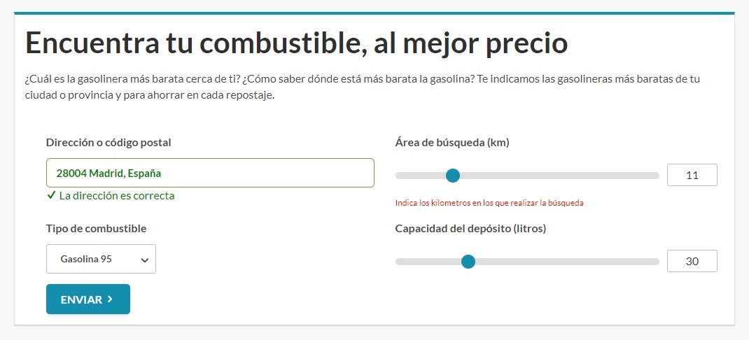 La OCU, dentro de su labor de ayudar a ahorrar, también cuenta con una herramienta sin coste que permite saber cuál es la gasolinera más económica. Solo es necesario ingresar la localización y el carburante: