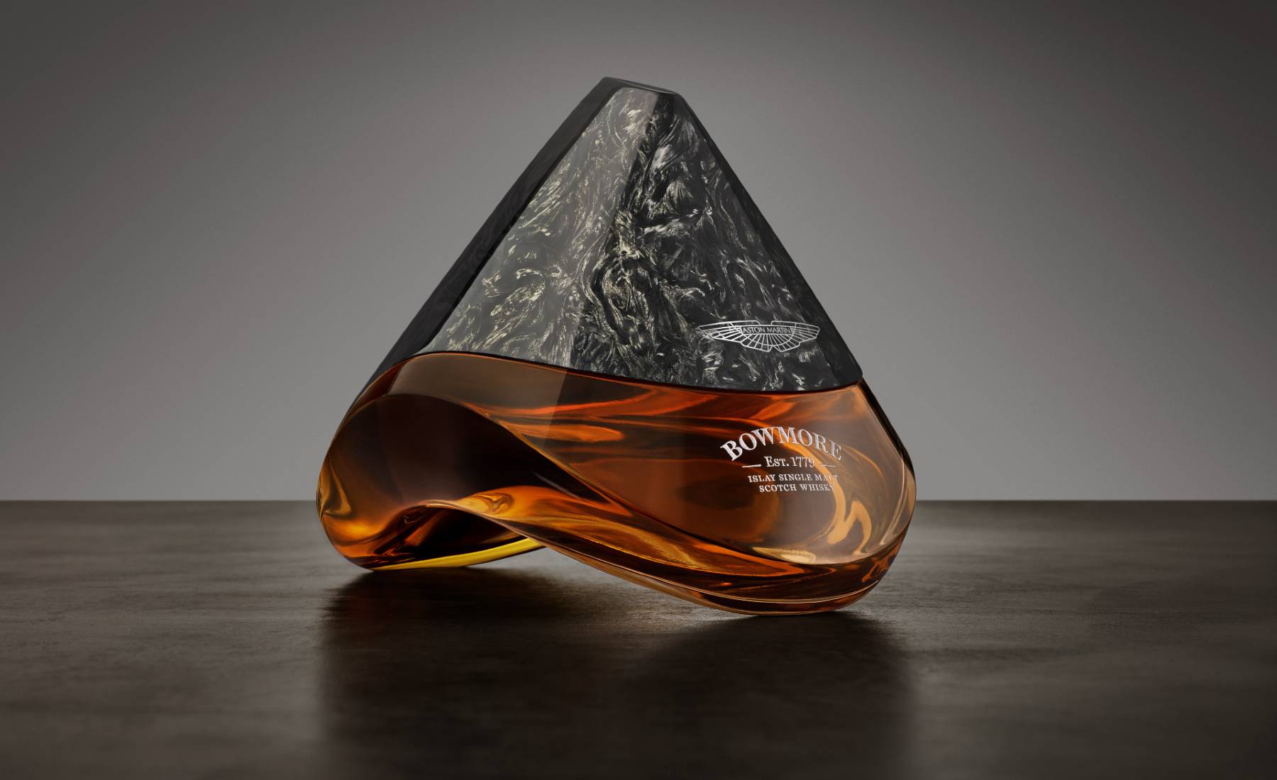 En esta colaboración para crear un producto único, Aston Martin ha puesto el diseño y los procesos de ingeniería de vanguardia para construir un recipiente futurista, mientras que Bowmore se ha encargado de la parte más artesanal para elaborar un whisky de malta excepcional y raro de 52 años.