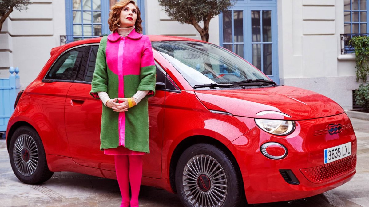 Agatha Ruiz de la Prada, nueva embajadora de Fiat, junto a un 500 eléctrico.