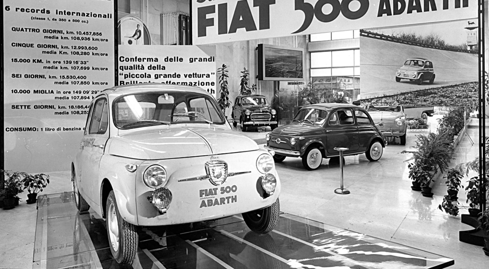 La década de los cincuenta trajo el despegue definitivo de Abarth. Innumerables triunfos se sucedieron en el ámbito deportivo, abarcando numerosas disciplinas como los circuitos, la regularidad o también la consecución de numerosos récords, tan en boga en una época en la cual el automóvil se hallaba en plena expansión.
