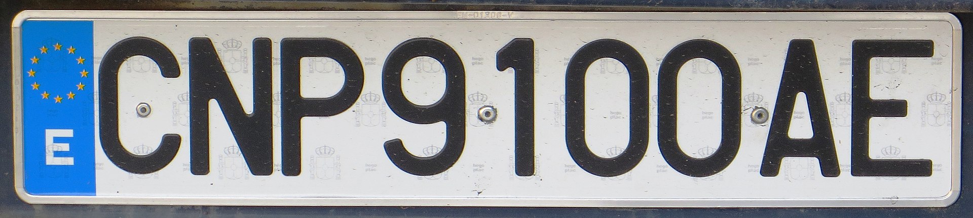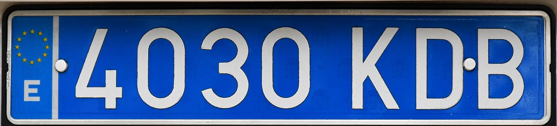 El sistema de matriculación actual se estrenó en 2000 y lo utiliza la mayor parte del parque: un 82% de los coches y un 77% de las motos, aproximadamente. Una placa de fondo blanco con dos bloques de números (0000) y letras (XXX) en negro. A la izquierda, una banda azul con el logo de la Unión Europea y la E de España.