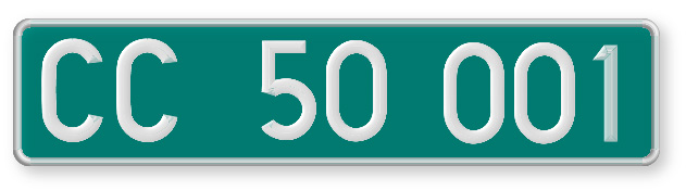 Cuerpo consular: fondo verde con caracteres en blanco. Además de letras CC, dos cifras indican el país y otras dos o tres cifras corresponden al vehículo, propiedad de la misión diplomática o de oficina consular.