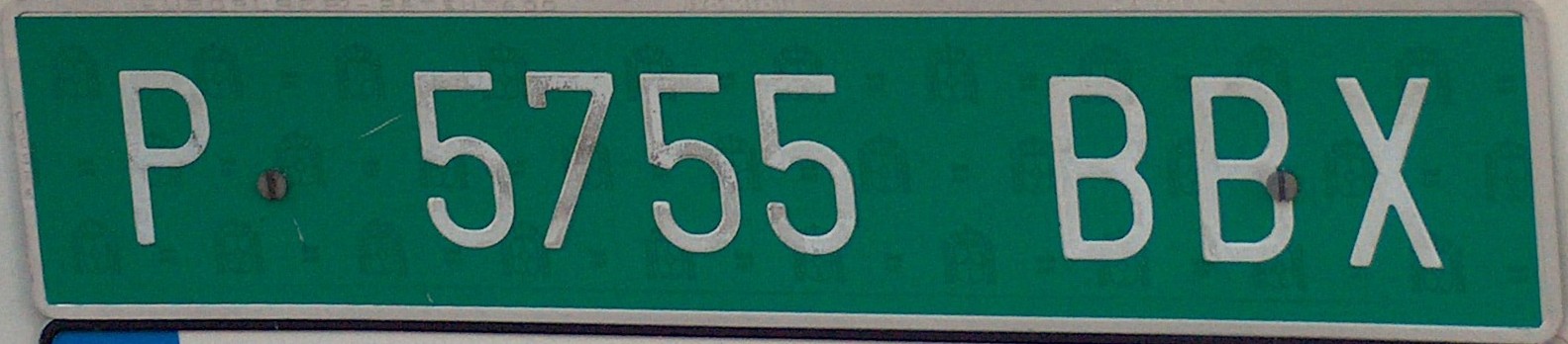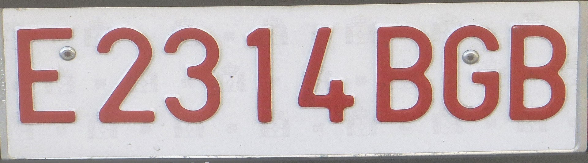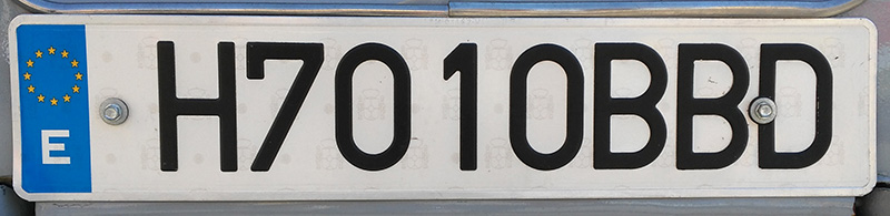 Los tractores agrícolas y otros vehículos especiales usan una matrícula blanca con caracteres en rojo. Utilizan la letra E por delante de un código alfanumérico que sigue el mismo esquema de las placas convencionales.