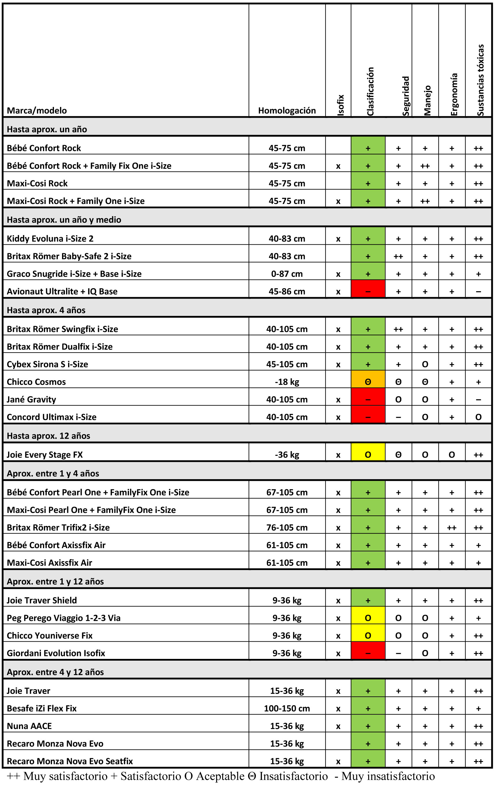 También reciben una mala nota en esta prueba los modelos Chicco Cosmos (considerado globalmente ‘insatisfactorio’) y Joey Every Stage FX. Este, sin embargo, no rebaja tanto la nota global, considerada ‘aceptable’.