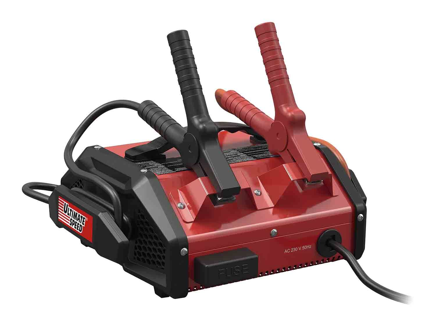 Un dispositivo más completo es este cargador de batería con función auxiliar de arranque. Además de la conservación del componente, permite el arranque directo del motor cuando la batería está baja o descargada, disponiendo de diferentes programas para elegir el más adecuado para cada batería. A través de una pantalla LCD muestra el proceso de carga, su estado y tensión, mientras que las pinzas de arranque están completamente aisladas. Su peso es de 6,5 kilogramos y tiene un precio de 59,99 euros.