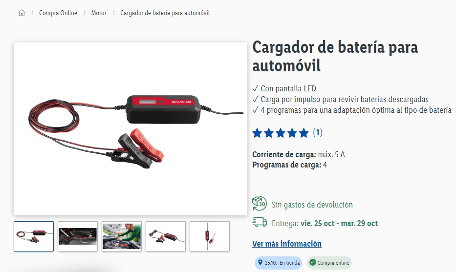 Si bien los dos productos mencionados están disponibles desde hoy, durante toda la semana han habido muchos más descuentos. Estas son algunas de las ofertas que ofrece el supermercado. Por ejemplo, este cargador de batería está en las tiendas físicas y también está online. Tiene un precio de 14,99 euros.
