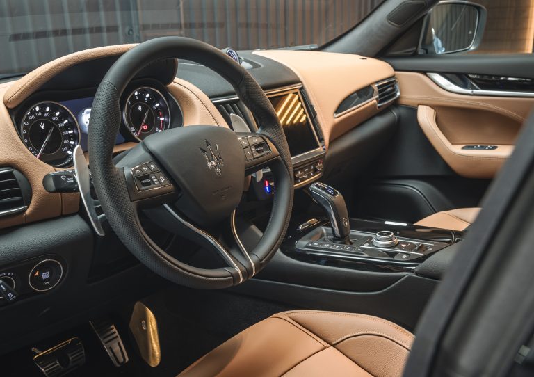 De este modo, Maserati decidió cumplir el sueño de Denver con un Levante GT pintado en Blu Denim. El color se asemeja mucho al famoso “azul cielo despejado” con detalles en cobalto.
