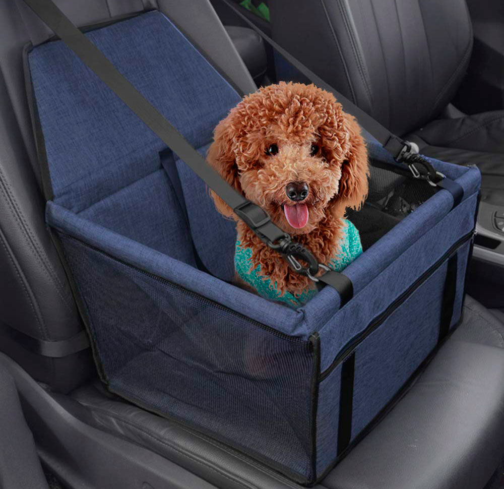 Si se viaja con un compañero de cuatro patas en el coche, esta pequeña bolsa de tela es un acierto seguro. Apta para perros y gatos de hasta 7 kilos de peso, se coloca sobre el asiento del vehículo fijándose con una cincha. Incorpora una anilla para agarrar el arnés del animal e impedir que esté suelto por el habitáculo. Además, se puede utilizar fuera del coche para llevar a la mascota y se pliega cuando no se usa. // Precio: 24,99 euros.