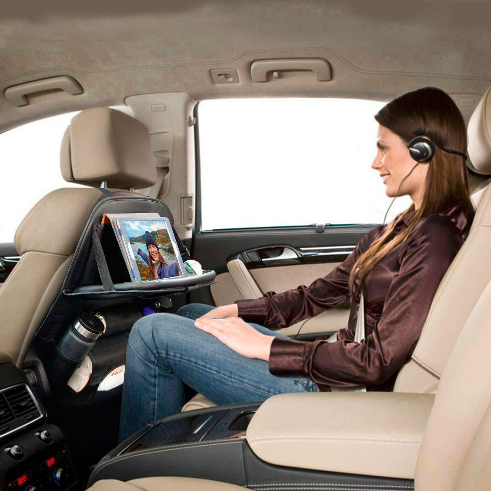 Evita llevar la zona trasera del coche llena de objetos sueltos utilizando este práctico organizador. Se coloca sobre el respaldo de los asientos delanteros y, gracias a sus ocho versátiles bolsillos, podrás guardar todo lo necesario. Además, cuenta con una sólida bandeja plegable y está confeccionado en tela de cuero, lo que ayuda a su limpieza y conservación. // Precio: 14,87 euros.