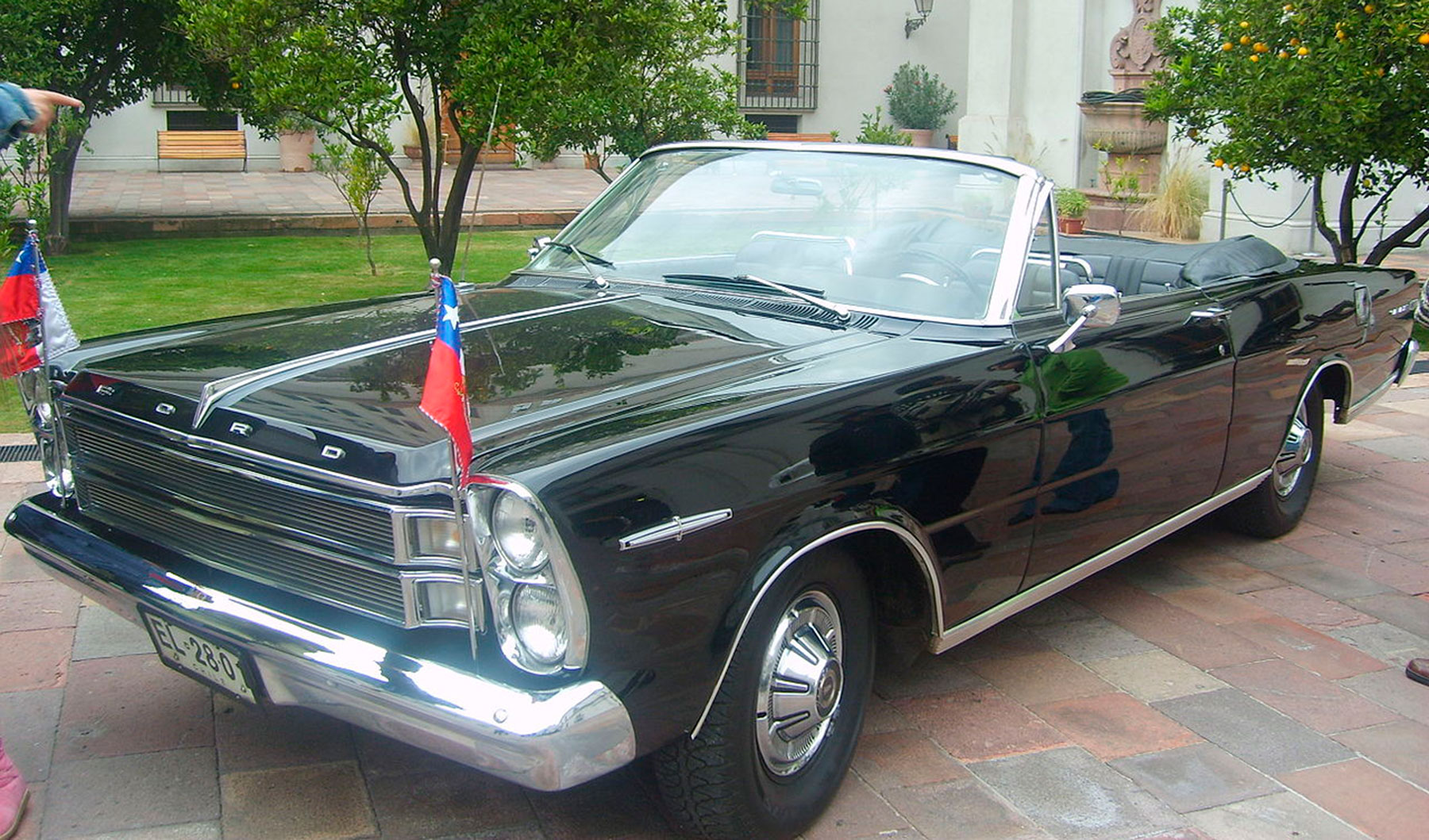 Los gobernantes chilenos, siempre buenos aliados de Estados Unidos en Sudamérica, se decantan por un modelo Ford. Sin embargo, el origen de esta tradición proviene del Reino Unido, y no de la tierra de las barras y estrellas. En 1970, la reina Isabel II de Inglaterra visitó Chile y trajo con ella un Ford Galaxie 500 XL descapotable. Al terminar su visita al país, la reina donó el coche al presidente Eduardo Frei. Desde entonces, ha sido el coche oficial de los presidentes chilenos, incluyendo al dictador Augusto Pinochet, quien llegó al poder tras su golpe de estado de 1973.