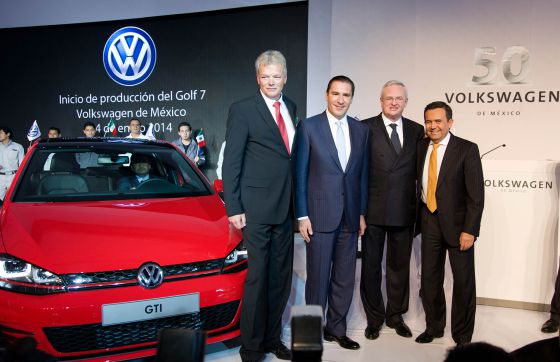 Norteamérica es el reto pendiente del grupo Volkswagen (VW) para ser el líder mundial indiscutible del automóvil. Su posición en México es sólida, con 191.000 unidades vendidas en 2013 y el 18% del mercado entre VW, Audi, Seat (es su quinto mercado mundial con 22.650 coches, tras Alemania, España, Reino Unido y Argelia), Skoda y Porsche. Pero en EE UU hay mucho margen desde las 614.000 unidades de 2013 (3,9% del mercado) hasta el millón de objetivo en 2018 (6% de cuota). Para lograrlo, VW ha invertido 520 millones de euros en crear en la factoría mexicana de Puebla una nueva línea que producirá 700 unidades diarias de las tres carrocerías del nuevo Golf 7 (tres y cinco puertas, y familiar) destinadas a Norteamérica. Así lo anunció su presidente Martin Winterkorn en el 50 Aniversario de esta fábrica, que con cerca de 550.000 unidades en 2014, será la segunda más importante del grupo tras la matriz de Wolfsburg. La ofensiva se completará con una nueva planta de Audi en San José Chiapa (México) y con un VW todoterreno de tamaño medio y siete plazas que se producirá en la de Chatanooga (EE UU).