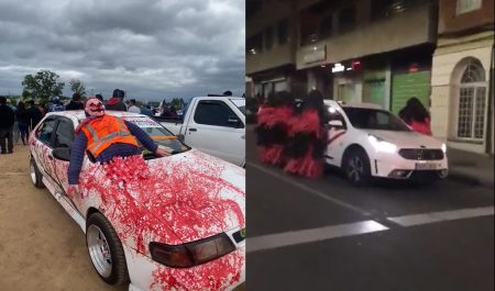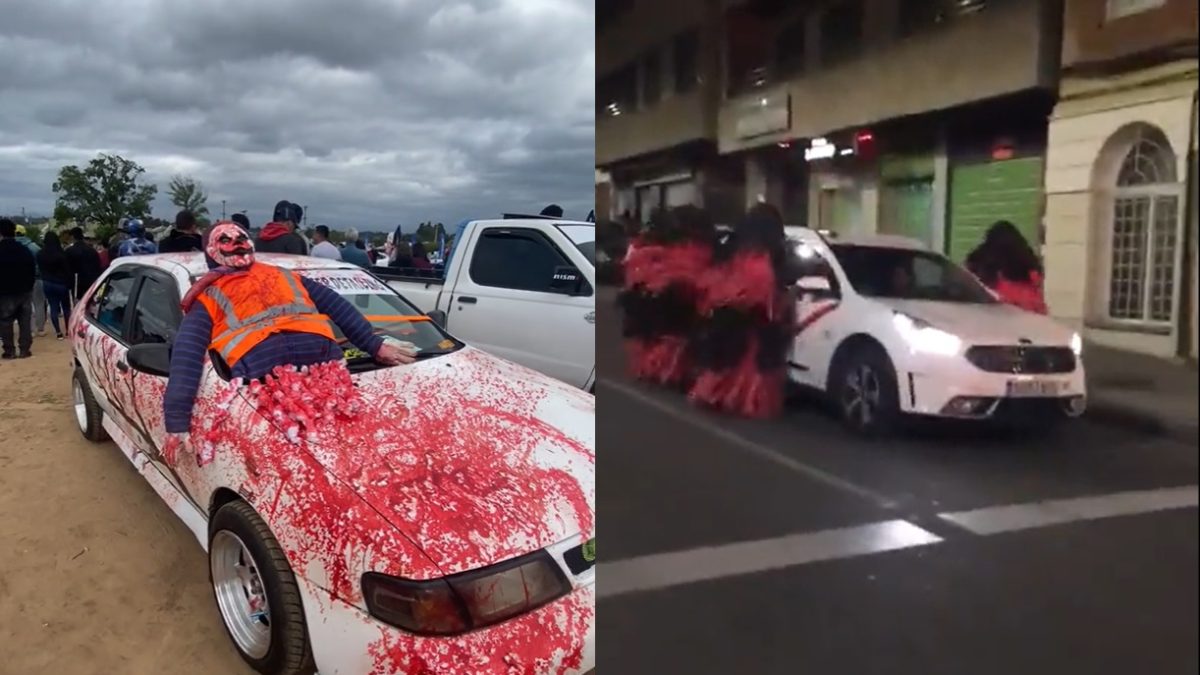 Y si bien los protagonistas son las personas disfrazadas, hay otros que han decidido centrar su creatividad en los coches. Y lo han alcanzado bastante bien: pintados con aerosol, mensajes aterradores, ensangrentados y muchos más.