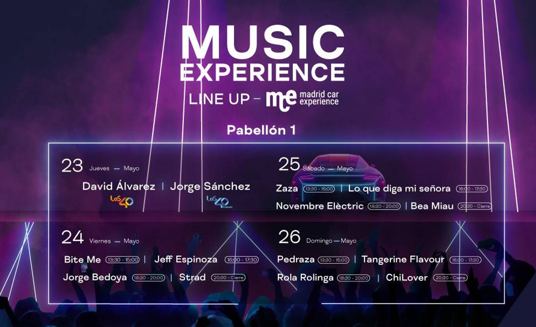Madrid Car Experience se celebrará entre el miércoles 22 y el domingo 26 de mayo en IFEMA. El salón tendrá se ubicará en los pabellones uno, tres, cinco y en las zonas exteriores del recinto ferial, junto al pabellón uno, donde se encontrarán los boxes de las pruebas al aire libre. El horario del salón es de 11.00 a 21.00 todos los días.
