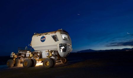 Desarrollado mayoritariamente por Nissan y General Motors directamente en las instalaciones del Johnson Space Center de la agencia espacial norteamericana, el MRV es un buggy de cuatro ruedas motrices –cada una con su propio motor eléctrico– que pueden orientarse independientemente… incluso hasta girar 180º. No existe ninguna unión mecánica entre las ruedas, que son gestionadas también de modo independiente por un sistema drive by wire que reparte en cada momento la fuerza y tracción óptimas.