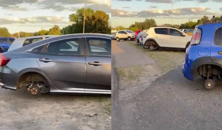 Los coches, desde un Corsa hasta un Honda Civic, como se aprecian en las imágenes, se encontraban aparcados al costado de la Autopista Ricchieri, cercano a la sede de la Asociación de Fútbol Argentino (AFA) en Ezeiza. Los medios argentinos aseguran que alrededor de 20 vehículos fueron víctimas de los robos.