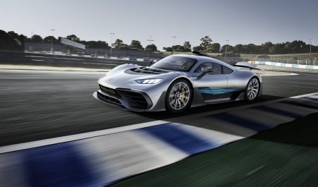 Pero si por algo destaca este Mercedes-AMG Project One es por su mecánica. Se trata de un híbrido que combina un motor 1.6 V6 turbo de gasolina derivado del empelado por la escudería de F1 con cuatro bloques eléctricos, uno situado en cada rueda, para desarrollar una potencia “de más de 1.000 CV”. A esto hay que sumar que el V6 tendrá un régimen de giro de hasta 11.000 revoluciones por minuto, lo que hará necesario reconstruirlo cada 50.000 kilómetros para que siga rindiendo al máximo nivel.