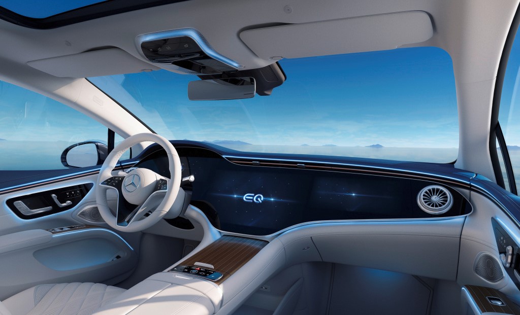 Por fuera, el nuevo Mercedes EQS es el coche más aerodinámico, y por dentro, el más digital. Consigue un Cx (coeficiente de resistencia al aire) de solo 0,20, que marca un nuevo récord mundial y debería reducir al mínimo el consumo energético en los viajes por autopista. Y su pantalla interior, denominada Hyperscreen, mide 1,41 metros y recorre todo el salpicadero de lado a lado. También equipa los faros Digital Light del Clase S, capaces de proyectar gráficos en la calzada para ayudar al conductor.