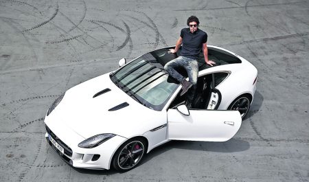 Pablo Ibáñez, más conocido como el Hombre de Negro, a bordo del Jaguar F-Type Coupé. / SANTI BURGOS