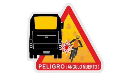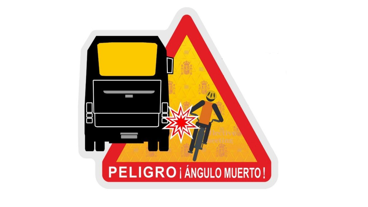 La nueva placa creada por Tráfico muestra una señal de peligro con el fondo amarillo y, sobre ella, una furgoneta (o un camión o un autobús) y un ciclista que aparentan haber chocado. En la parte de abajo se lee, en mayúsculas, “Peligro ¡ángulo muerto!”. Y se trata, en definitiva, de un atajo de urgencia para solucionar la invisibilidad de bicis y motos y evitar el riesgo de las zonas ciegas, a la espera de que se extiendan a todos los vehículos las ayudas tecnológicas a la conducción.