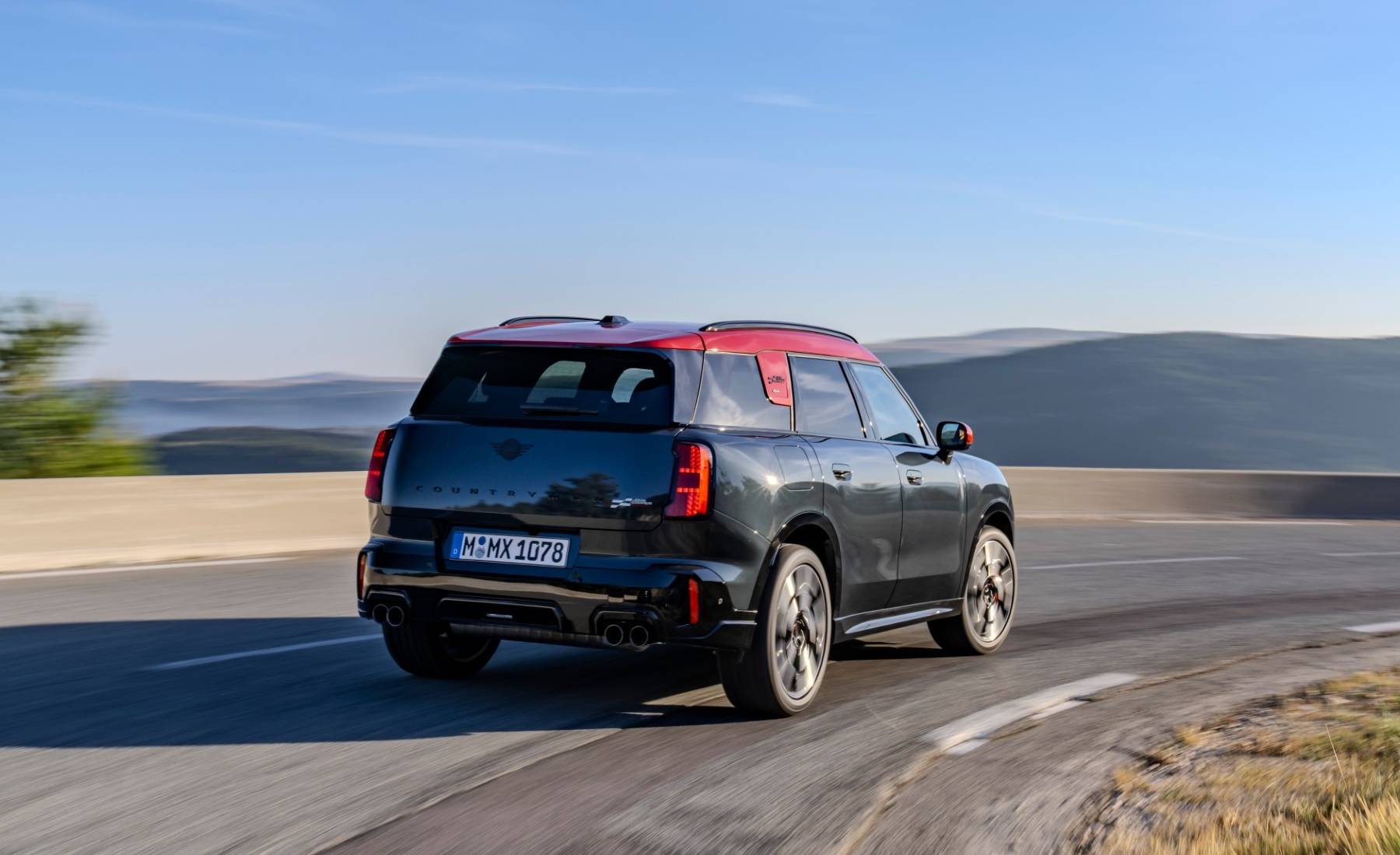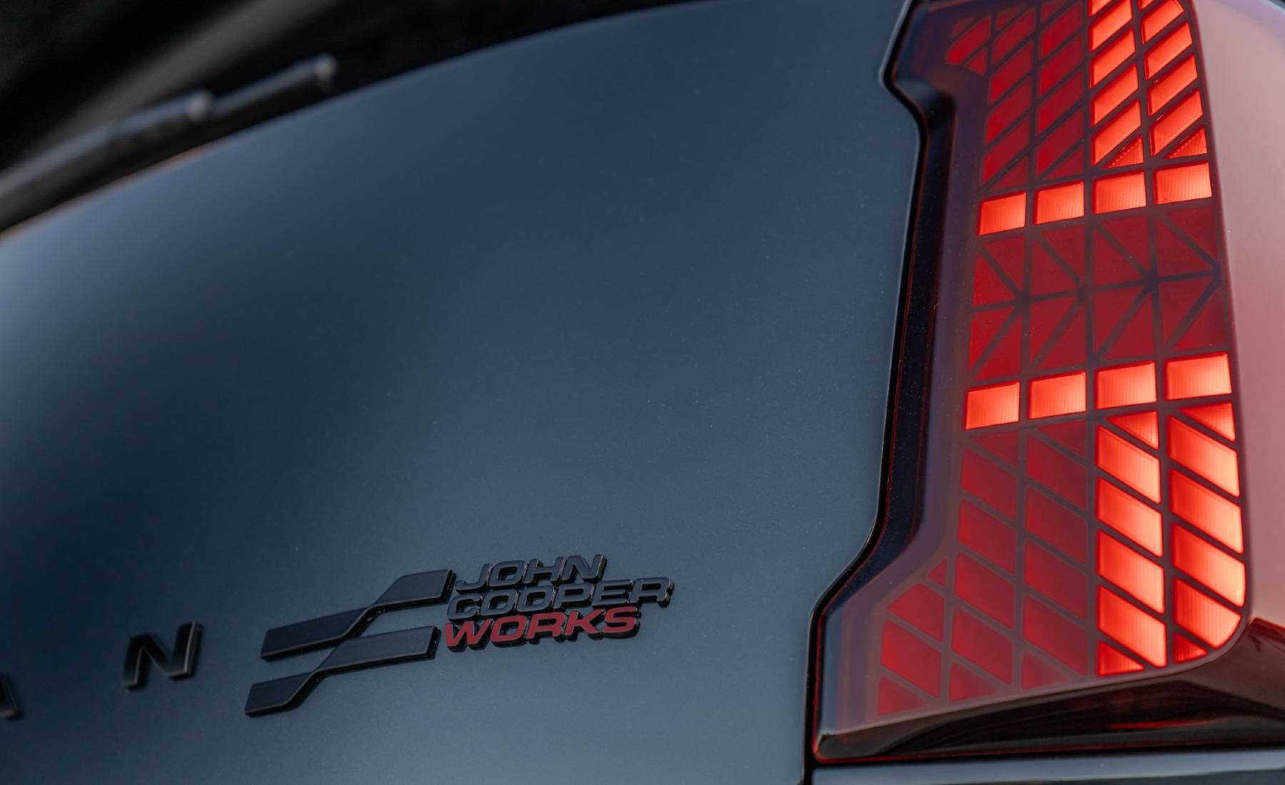 Además, el pilar C cuenta con un nuevo diseño que se funde a la perfección con el techo. Este se curva hacia el final del coche, confiriendo al Mini Countryman JCW una silueta más estilizada a pesar de la mayor altura y anchura con respecto al modelo precedente. En la zaga, los faros traseros Signature Mode destacan la trasera del vehículo y ponen de relieve su mayor anchura.