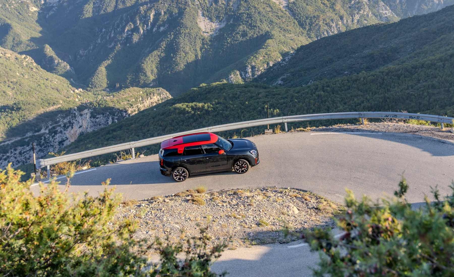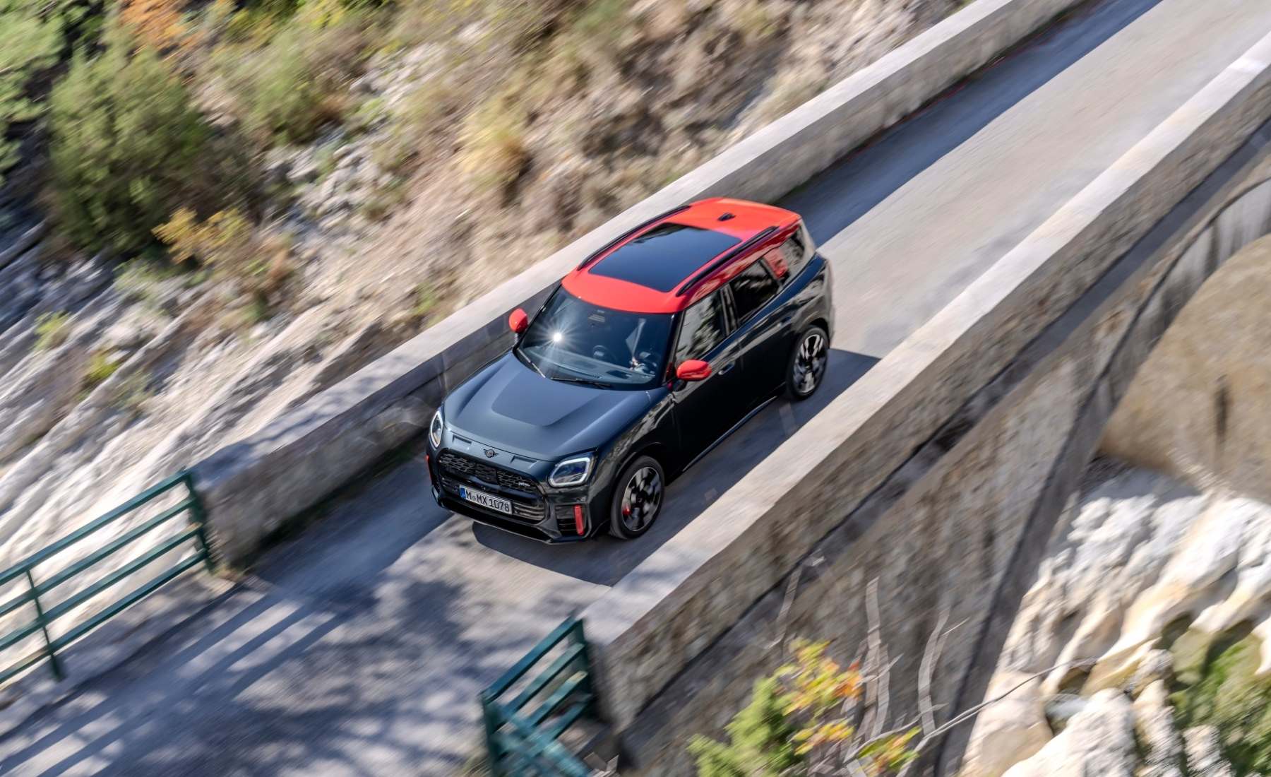 Por otra parte, el sistema de tracción total de serie distribuye su potencia de forma precisa y fiable en cualquier situación de conducción. Asimismo, el sistema de frenos de alto rendimiento con pinzas en color Chili Red garantiza potentes y precisas deceleraciones. Adicionalmente, el característico sonido del sistema de mariposas de escape le confiere una actitud de coche de carreras que recuerda al primer Mini Cooper del Rally de Montecarlo de 1964.