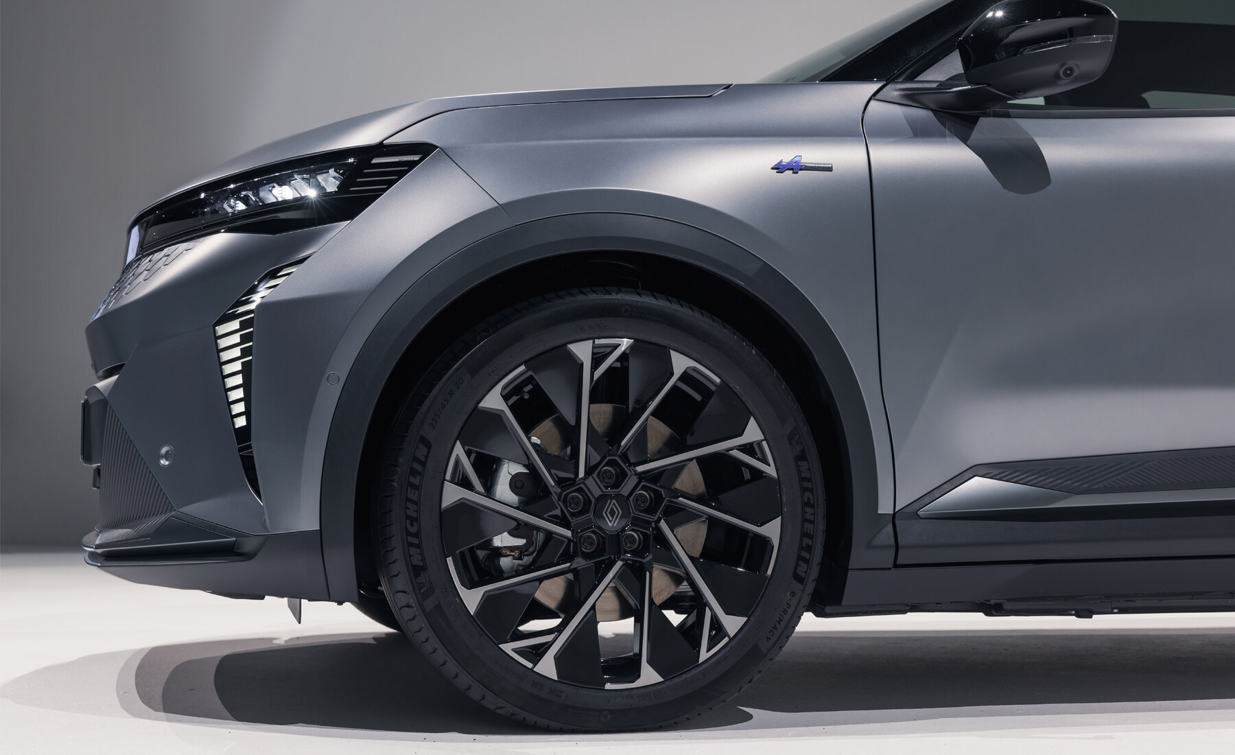Gracias a su batalla de 2,78 metros (+10 cm en comparación con Megane E-Tech eléctrico) y a las ventajas que ofrece la plataforma modular CMF-EV el nuevo Scenic E-Tech 100% eléctrico muestra una marcada personalidad. Por su parte, las llantas que se pueden montar en dos tamaños (19 o 20 pulgadas) incorporan el logotipo de Renault en la zona central, al igual que la parrilla frontal. Así mismo, incorpora la nueva firma luminosa en forma de rombo.