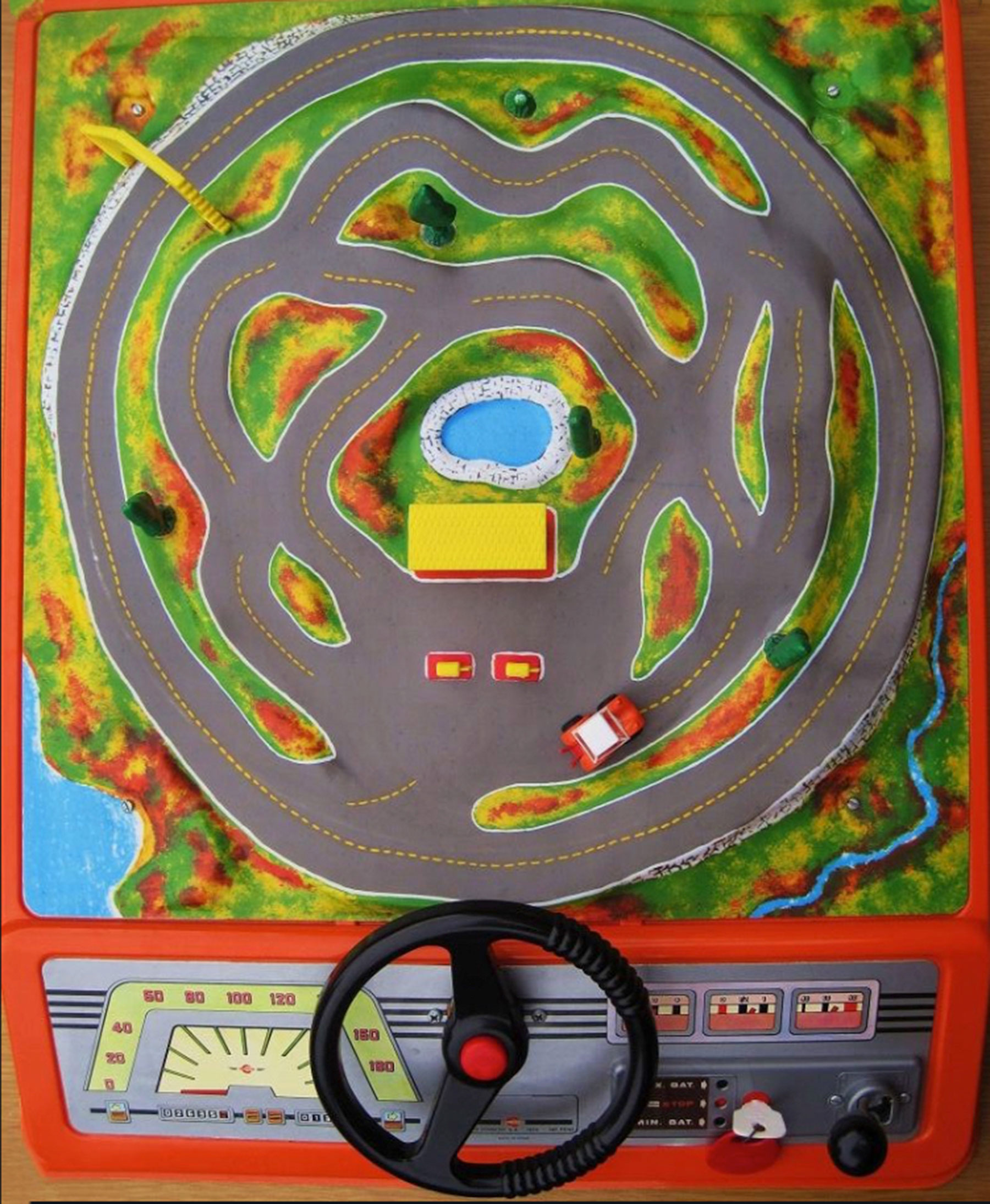 Se trataba de dirigir un cochecito de plástico por una pista de obstáculos mediante un cuadro de mandos que incluía una llave con dos posiciones, un volante y un cambio de marchas de cuatro velocidades. El mecanismo era en realidad muy simple, pero permitía –dentro de las limitaciones de un juguete mecánico– bastante improvisación al conductor  e incluso parar a repostar.