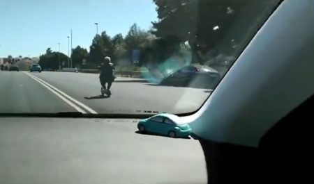 En patinete eléctrico por una autovía de cinco carriles… y sin casco