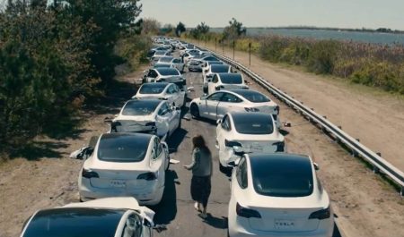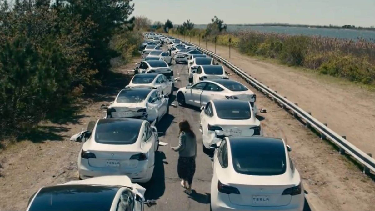 Netflix publicó en X, antes Twitter, un fragmento de la película en el que Julia Roberts recorre, a pie, una carretera llena de coches Tesla estrellados y apilados. A continuación, varias unidades ponen su vida en peligro.