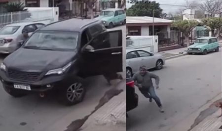 Tal como se ve en parte del vídeo, el coche, en frente de la desesperación de su dueño, avanzó hasta estrellarse en la casa de un vecino de Gustavo. Este último intentó evitarlo corriendo detrás de su coche, pero no hubo forma. Para suerte de todos, no se registraron heridos (tampoco habían peatones circulando) y solo el coche quedó dañado.