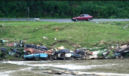 Es cosa de hacer un viaje virtual por el río Luoup, en Estados Unidos, para darse cuenta de una curiosa situación. Lo muestra Google Maps y lo reflejan algunos expectantes curiosos que han percibido decenas de carrocerías de coches oxidadas y abandonadas en la orilla del arroyo.