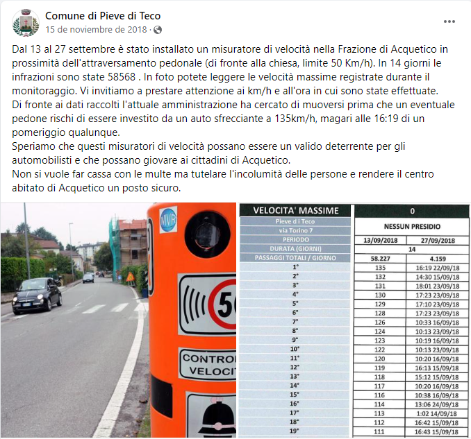 Como se podía esperar, esta carretera era un lugar habitual en el que los conductores se daban cita para retarse en carreras o, simplemente, disfrutar de las curvas y de algo de velocidad. El alcalde de Acquetico, Alessandro Alessandri, y parte de los vecinos acabaron hartos de esta situación, así que al final instalaron un radar.