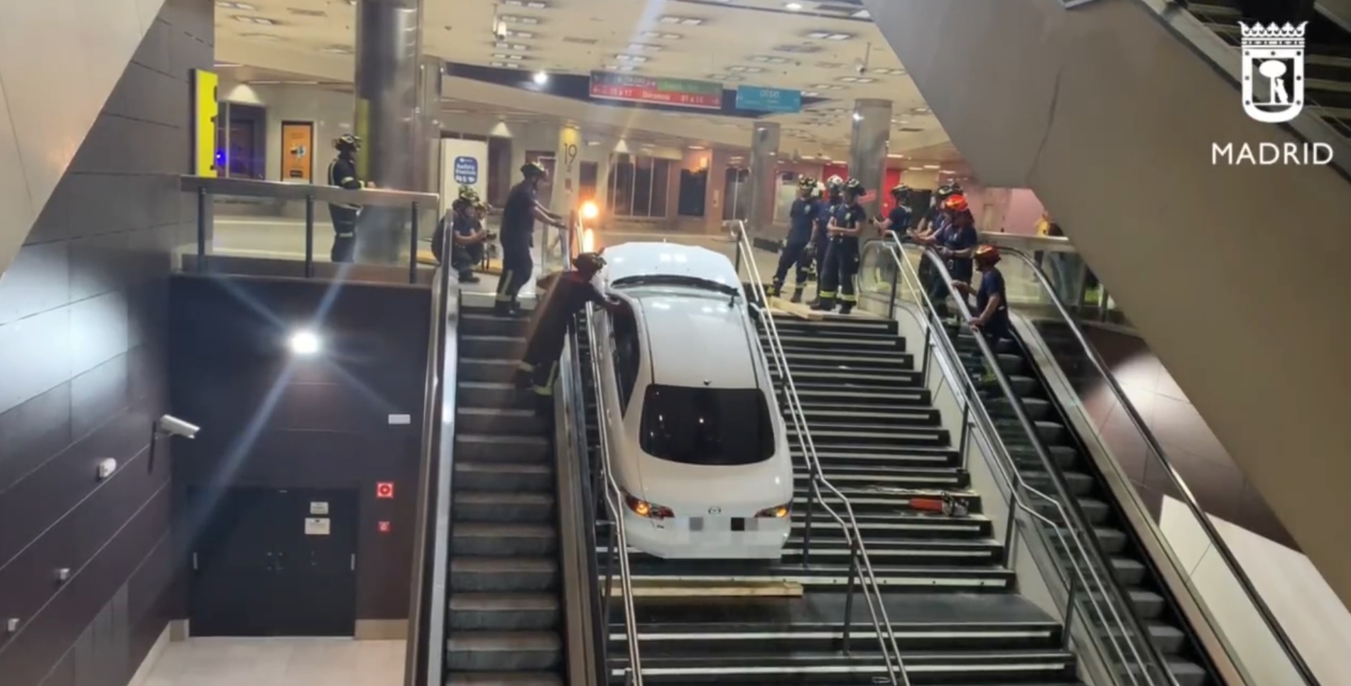 Y finalmente, tal como se aprecia en el vídeo de Emergencias de Madrid, quedó encajado en las escaleras del intercambiador de transportes. ¿Daños? Solo materiales. A pesar de que aún había personas en el lugar, nadie resultó herido.